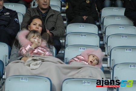 Oldukça soğuk bir havada oynanan ve Slovak futbolcunun yedek kulübesinde başladığı maçta, futbolcunun eşi ve iki minik kızı tribünlerde yer alırken, ilerleyen dakikalarda Filip’in eşi, çocukların daha fazla üşemesine dayanamayarak kızlarının üstünü battaniye ile sardı.