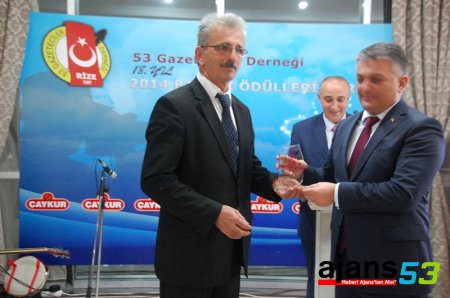 Basında Birlik ve Beraberliğe katkı ödülüne laik görülen Dernek Başkanı Mustafa Bayrak”ın ödülünü Rize Valisi Ersin Yazıcı verdi, Yazıcı konuşmasında böylesine kapsamlı bir ödül töreninde katılmaktan dolayı mutlu olduğunu belirterek “ 53 Gazeteciler Derneği sadece Gazetecilere değil, İş adamı, Bürokrat ve STK larıda ödüle laık görerek onların çalışma tempolarını değerlendirdi, kendilerini kutluyorum” dedi.