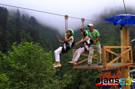 Bölgedeki zipline işletmecileri, gelen konuklarına farklı aktiviteler sunarak turist sayısını artırmayı hedefliyor. Bu kapsamda Ayder Yaylası'nda çelik halatlarla bağlanarak dağdan aşağı inilen bir aktivite olan zipline sistemini kuran işletmeler, 50 metre yüksekliğinde 150 metre uzunluktaki alanda müşterilere hem doğal güzellikleri yukarıdan görme imkanı sunuyor hem de heyecanlı anlar yaşatıyor. Emniyet kemeriyle bağlandıktan sonra çelik halat yardımıyla vadinin karşı yakasına geçen ziyaretçiler, daha sonra aynı yolu izleyerek başladığı yere dönüyor.