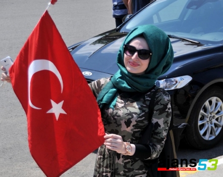 Cumhuriyet Meydanında ellerinde Türk bayrakları bekleyen kalabalık Cumhurbaşkanı Erdoğan’ a destek veren sloganlar attı, tekbirler getirdi. Rize Belediyesi’ne ait ses otobüsünden Mehter Marşı’nın çalındığı alanda Rize Belediyesi vatandaşlara su, Çaykur ise güneşten korunmaları için şapka dağıttı. Kalabalık içerisinde elinde Türk bayrağı ile askeri üniforma desenli kıyafet giyen Feyza Koçal adlı genç kız dikkat çekti.