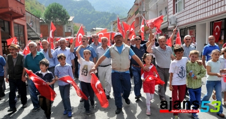 İkizdere’de gerçekleştirilen yürüyüşe çok sayıda kişi ellerinde Türk bayrakları ile katıldı, ‘Asker ve polise uzanan eller kırılsın’ sloganları attı. Terör örgütü aleyhine de sloganların atıldığı yürüyüşü İkizdere Belediye Başkanı Hasan Köseoğlu, İkizdere Derneği başkanı İsmet Ekşi, İl Genel Meclis üyeleri ile siyasi parti temsilcileri de katıldı. Yürüyüşün ardından İkizdere Kaymakamlığı önünde saygı duruşunda bulunuldu, İstiklal Marşı okundu.
