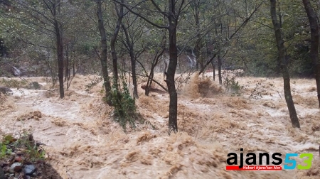 Çamlıhemşin ilçesinde şiddetli yağışın ardından Ayder Deresi'nin taşması nedeniyle mahsur kalan kişi, jandarma ve vatandaşların çalışmasıyla kurtarıldı.