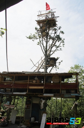 Rizeli 70 yaşındaki arıcı Nuri Bostan, arı kovanlarını ayılardan koruyabilmek için gürgen ağacını yaşam alanına dönüştürdü.