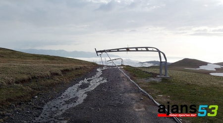 Rize'nin İkizdere İlçesi Çağrankaya Yaylasında baz istasyonunun elektrik kablolarını taşıyan demir direkler eğrildi.