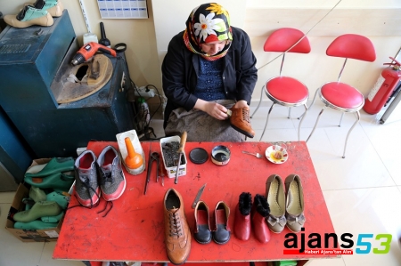 "Dükkanın önünden geçerken 'sen mi yapacaksın' diye soran oluyor. 'Usta kim' diye sorduklarında 'benim' diyorum. Burada bir erkek arıyorlar. Usta olduğumu söyleyince şaşırıyorlar. Sürekli müşterim çok. Bir ayakkabıyı en az bir günde yapıyorum. Kalıpta bir gün kalması lazım çünkü. Çocuklarımdan destek görüyorum. Çocuklarım bana 'Anne artık bu senin işin, bu işi devam ettir' diyor. Eşim ilçedeki cezaevinde mahkumlara ayakkabı yapımı kursu veriyor."
