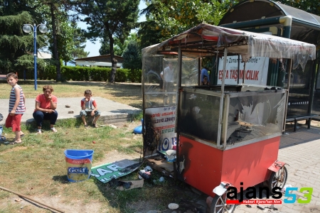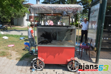 Zabıtaya kızıp seyyar tezgahını yaktı