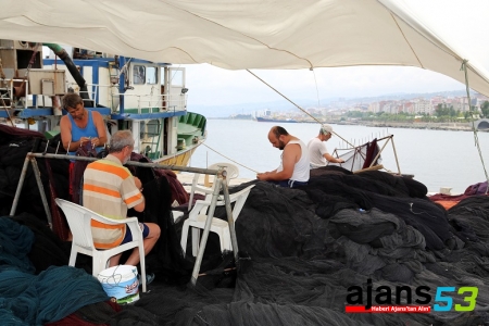 Akçaabat Limanı'nda balıkçı ağlarını tamir eden Halil İbrahim Nişancı da 8 yıldır balıkçılık yaptığını ve av yasağının kalkacağı 1 Eylül'ü sabırsızlıkla beklediğini söyledi.
