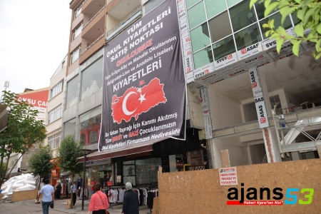 Mağazaya, üzerinde Türk bayrağı bulunan, "Bu vatan toprağı için kanını akıtmış tüm şehit ve gazi çocuklarımızın okul kıyafetleri firmamızın hediyesidir" yazılı pankart asıldı.
