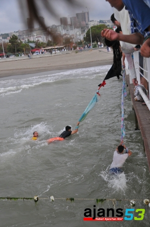 Bir süre çarşafla suyun üzerinde kalan gençler, daha sonra Samsun Büyükşehir Belediyesi İtfaiye Dairesi Başkanlığı can kurtaranları tarafından sudan çıkarıldı.