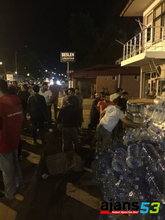 Rize Belediyesi'nin tahsis ettiği kamyon ile Hopa caddelerinde içme suyu dağıtan RİZE OFFROAD üyeleri ve Hopa'da bu işte görevli kişiler suları Hopa'daki mağdurlarımıza dağıttılar. Yaptıkları yardımları alkışlayan hopa halkı duygulu sözlerle Rize Offroad Kulubüne Teşekkür Ettiler..
