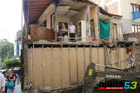 Trabzon’un en işlek caddelerinden biri olan Huzur Sokakta bir evin kentsel dönüşüm projesi nedeniyle yıkılması yan tarafında bulunan binanın duvarının da yıkılmasına neden oldu. Mahallenin çaycısı yan tarafı yıkılan ve dışarıdan içi gözüken binada çaycılık yapmaya devam etti. Olanlara aldırış etmeden vatandaşların şaşkın bakışları arasında mesleğini elinden bırakmayan çaycı, oralet ve çay yapmaya devam etti. Evin ilginç görüntüsünü altında çalışan çaycıyı fark eden bir çok vatandaş cep telefonları ile fıkralara konu olacak bu durumu fotoğrafladı.