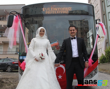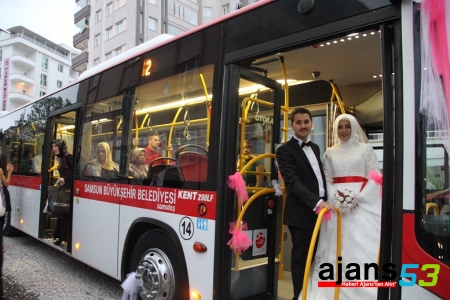Genç çift, düğünlerinde bir farklılık yaparak, tanıştıkları halk otobüsünü gelin arabası yapmak istedi. Bunun üzerine Samsun Ulaşım AŞ'ye giden (SAMULAŞ) Sibel Aslan, yetkililerle görüşerek düğün aracı olarak halk otobüsünü kullanmak istediklerini bildirdi. Yetkililerin izin vermesi üzerine otobüsü süsleten genç çift, davetlileri de alıp şehir turu attıktan sonra vatandaşların şaşkın bakışları arasında nikah salonuna gitti.