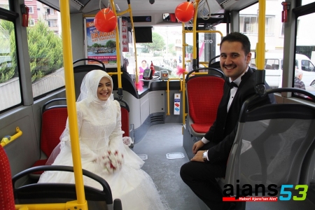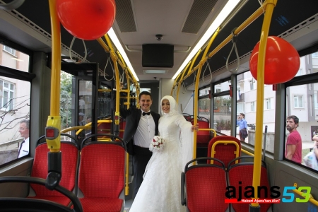 - Samsun'da dünyaevine giren bir çift, birbirlerini ilk kez gördükleri halk otobüsünü gelin arabası olarak tercih etti