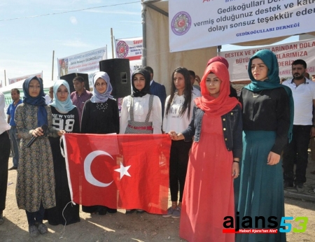 "Bu bayrak hiçbir zaman inmeyecek" diyen Gedikoğlu, "Terör örgütü ve yandaşlarına sesleniyorum; bir an önce elinizi eteğinizi bu işlerden çekin, yoksa topyekun yok olacaksınız. Bunun başka çaresi yok. Burada yaşayan insanların tamamı eline silahı alıp ülkenin neresinde savaş varsa oraya gidip savaşacak durumdadır. Canla başla insanlarımız bunu istemektedir" ifadelerini kullandı.