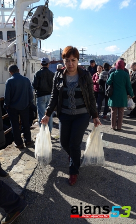 Zonguldak'ta kilogramı bir liradan satılan 10 ton hamsi, yaklaşık 2 saatte tükendi.
