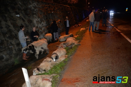 Sürücü Eşen ise koyun sürüsünün bir anda önüne çıktığını savunarak, "Zeminin ıslak olmasıyla aracı bir anda durduramadım" dedi.