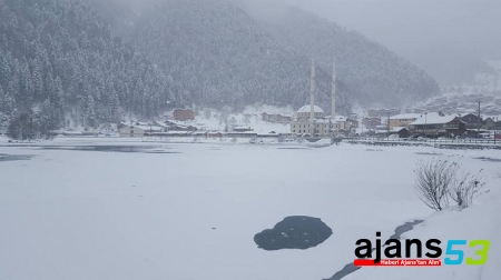 Trabzon'un Çaykara ilçesine bağlı doğal güzellikleri ile dünyaca ünlü Uzungöl Beldesi, dün akşam saatlerinden itibaren başlayan kar yağışı yerini soğuk havaya bıraktı. Havanın soğumasıyla birlikte Uzungöl’ün yüzeyi kısmen donarak buz tuttu.