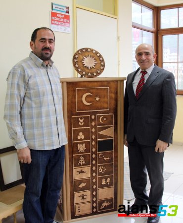 Yeni yaptıkları ürünü Türkiye’nin 12. Cumhurbaşkanı hemşehrileri Recep Tayyip Erdoğan için hazırladıklarını belirten bakır ustası Süleyman Delibalta “Bu çalışmamızı Cumhurbaşkanımıza hediye edeceğiz. Üzerinde bulunan bölüm Cumhurbaşkanlığı forsudur. Alt kısmında bulunan simgeler bu forsun açılımıdır. Tarihteki Türk devletlerinin bayraklarını rölyefle işleyip ahşapla birleştirdik. Buradaki amaçta ahşapla rölyefi birleştirerek hem günlük kullanılabilen ürünler yapmak hem de görsel güzel ürünler çıkartmaktı. Dokuz arkadaşımla beraber 15 gündür Cumhurbaşkanımıza hazırladığımız hediyeye çalışıyoruz. Tamamen el emeğiyle bu çalışmayı yaptık” ifadelerini kullandı.