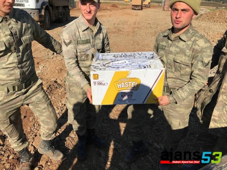 Aslen Çamlıhemşinli olan ve Manisa'da Damla isimli pastahanenin işletmesini yürüten Süleyman, Muzaffer ve Yusuf Yağcı kardeşler, Afrin'de görev yapan Mehmetçiğe tatlı ve kuru pasta desteğinde bulundular.
