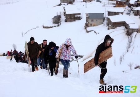 Renkli görüntülere sahne olan şenlikte katılımcılar, yörede "petranboard" ya da "lazboard" adı verilen tahtalarla kayak yapmak üzere yayladaki parkura geldi. Önce deneme yapan vatandaşlar, ardından kaymanın keyfini yaşadı. Bazı vatandaşlar ise dengelerini sağlayamayarak düştü.