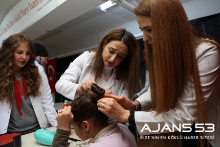 Rize'nin İyidere ilçesinde kadın kuaför salonu bulunmaması nedeniyle Halk Eğitim Merkezince açılan kuaförlük kursunda eğitim alan 13 kadın, sosyal sorumluluk projesi kapsamında okulları dolaşarak, öğrencilere ücretsiz saç kesimi ve bakımı yapıyor.