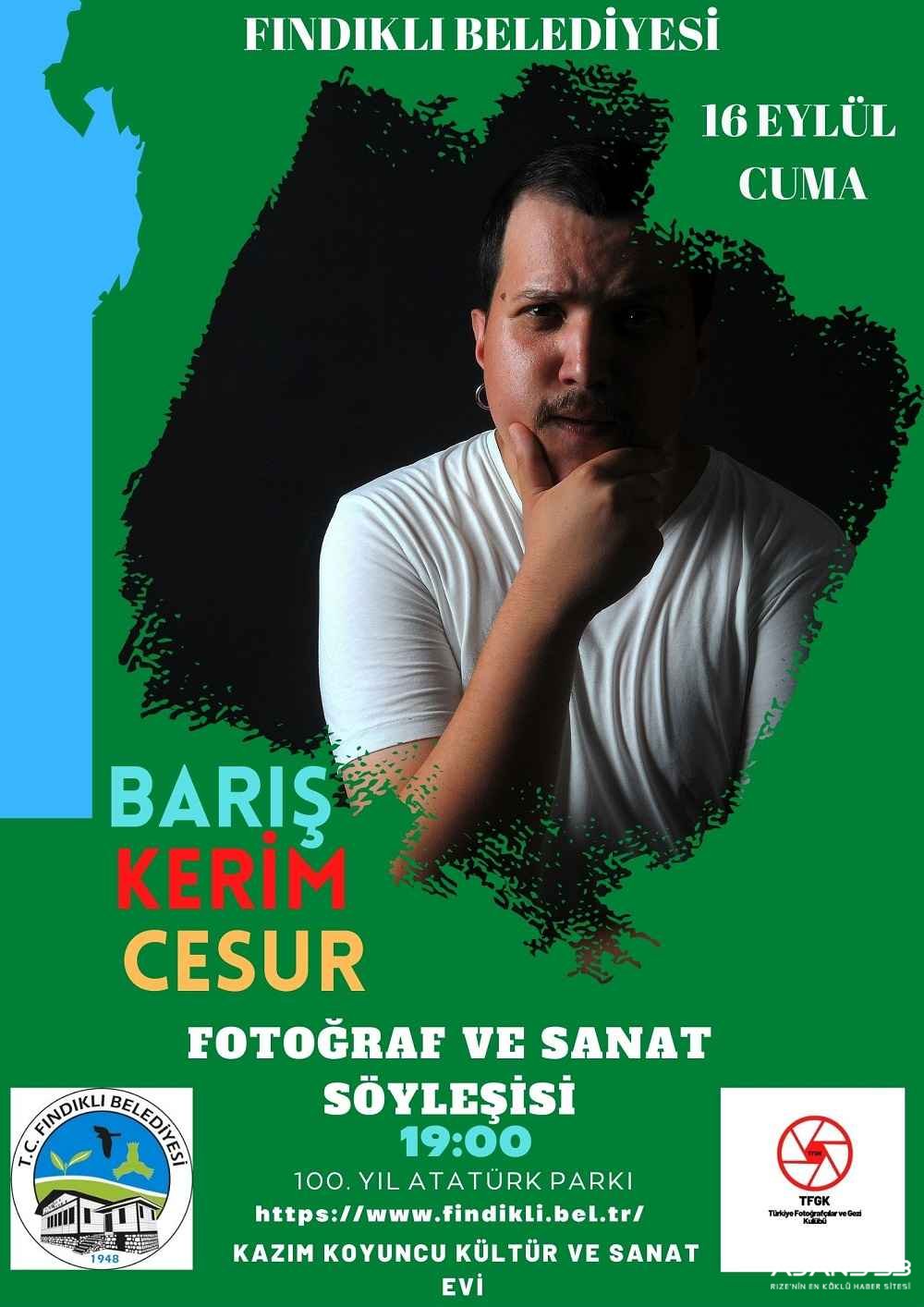 Fotoğraf Sanatçısı Oyuncu TFGK Türkiye Fotoğrafçılar ve Gezi Kulubu kurucusu Barış Kerim Cesur Rize Fındikliya Geliyor Sanatçı 16 Eylül Cuma Günü Kazım Koyuncu Kültür ve Sanat Ėvinde Saat 19:00 da Fotoğraf ve Sanat Severlerle Bulusucak 17 ve 18 Eylül de ise  Halkın Katılımıyla Fotoğraf Turu Gerçekleştirilecektir.