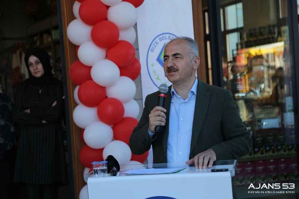 Belediye Başkanı Rahmi Metin ise konuşmasında; ”Fiziksel anlamda küçük ama nitelik ve keyfiyet açısından çok önemli bir açılış bu bizim için. Göreve geldiğim gün itibarı ile yıllardır Kadınlarımızın el emeklerini Halk Eğitim Merkezimizin nezdinde gezip görürdük. Ama ben her zaman sorardım bize bunları sergilediniz gördük peki daha sonra ne yapıyorsunuz dediğimde, alıp eve götürüyoruz çeyiz olarak saklıyoruz, esnaf tanıdık varsa onların dükkanına koyuyoruz, eş dost akraba ya veriyoruz diyorlardı. Benim hep hayalimdeydi. Belediye başkanı olunca da belediyenin yapabileceği bu tip yerlerde sosyal tesislerde satış noktası oluşturma düşüncem ve sözümüz Çay Çarşısında hayata geçmiş oldu. Bu bir başlangıç kendi sosyal tesislerimizdede bayanlarımızın buluşma noktalarını oluşturacağız. Gelen turistlerimizde Rize’ye ait bir eser olarak buralardan aldıkları ürünleri evlerinin bir köşesinde hatıra olarak saklayacaktır. Necip Fazılın da dediği gibi “Tomurcuk vermeyen ağaç kütüktür” bu aslında şu demektir herkesin bir ideali olması lazım. Onun için bunlar evlerde kadınlarımızın gönlünde kalbinde yeşeren noktalardır. Kendilerini ifade etmelerinin adıdır. Maddi kazançtan ziyade manevi kazancı mutluluğu daha fazladır” diyerek emeği geçen herkese teşekkür etti.