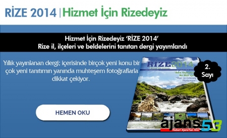 Rize il, ilçeleri ve beldelerini tanıtan ve hizmetlerini anlatan Hizmet İçin Rizedeyiz ‘RİZE 2014’ sloganı ile yayımlandı.