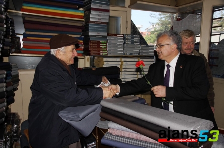 Kermes, kitap reyonları ve el işlemesi eserlerin bulunduğu çadırın gezilmesinden sonra Atatürk caddesi boyunca esnaflara ve vatandaşlara Başkan Kasap ve Müftü Doğan tarafından çiçek dağıtıldı.