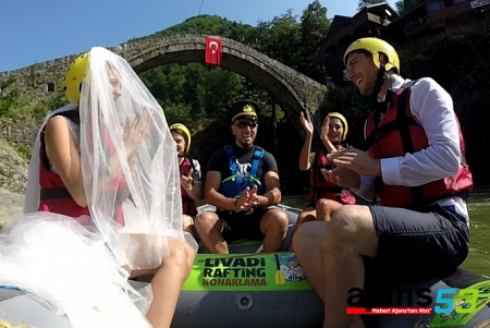 - Rize’de genç raftingciler nikahlarını rafting yaptıkları botta kıyarak en mutlu anlarını ölümsüzleştirdiler