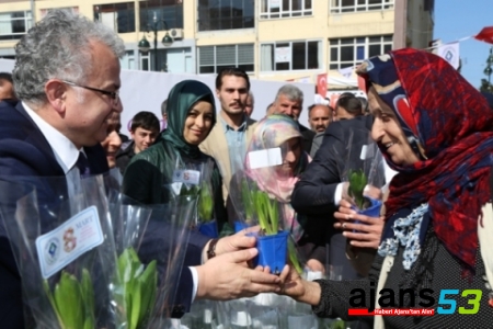 Program sonrasında Başkan Kasap, eşi Menduha Kasap ve kızı Lena Kasap ile birlikte kadınlarımıza sümbül çiçekleri hediye etti.