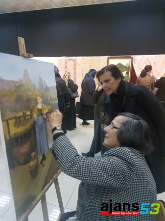 “ Her yaşta sanat” sergisinde sergilenen eserler arasında, Yatak örtüleri, makine nakış işlemeleri, iğne oyaları,,elbise ve gecelik dikimleri ile kabartma resim, yağlı boya resimler sergilendi.