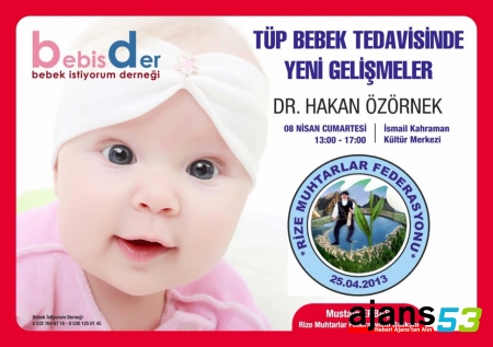 "Rize Muhtarlar Federasyonu olarak DR:Hakan ÖZÖRNEK ve uzman doktorlarımızla hazırlanan sunumla 08/04/2017 cumartesi günü saat 13:00 da İsmail Kahraman Kültür merkezi küçük salonda düzenlenecek olan Tüp bebek tedavisinde en son yeni gelişmeler ve kadınlarımızın sağlık sorunları ile bilgilendirme toplantısı yapacaktır.