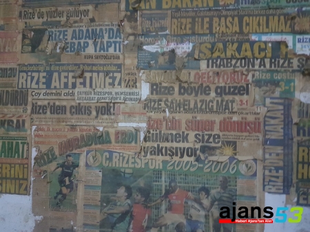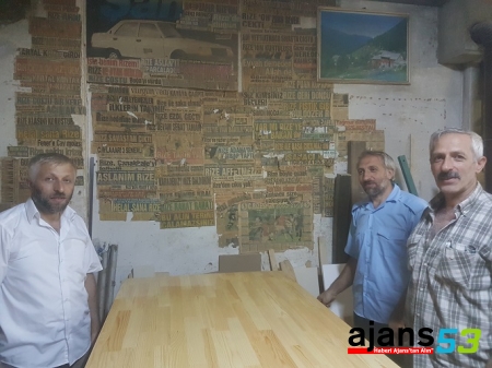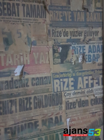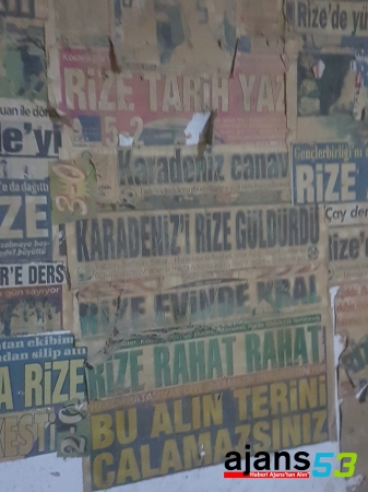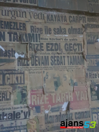 Rize’nin Çamlıbel mahallesinde mobilya dekorasyonu işi yapan Dursun Ali, Selim, Ahmet ve Muammer Dinçer kardeşlerin yeşil – mavili renklere olan sevdası dükkânların duvarlarına asılı olarak bulunan gazete küpürleri ile yaşamaya devam ediyor.