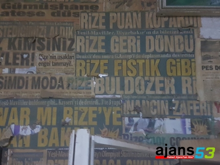 Çaykur Rizespor’un hiçbir maçını kaçırmayan Dinçer kardeşler, yaklaşık 30 yıldan buyana yeşil – mavili takımın kazandıkları maçlar sonrası ilk işleri sabahın erken saatlerinde gazete bayilerin giderek gazete almak oldu. Manşetten verilen Rizespor galibiyet haberlerini keserek mobilya dükkânlarının bir bölümünü asan Dinçer Kardeşler ;” Rizespor bizim sevdamız, her galibiyet sonrası ertesi gün ilk işimiz gazete bayisine giderek Rizespor’un haberleri okumak ve o küpürleri keserek nostolji köşemize asmak oldu. Yaklaşık 30 yıllık bir arşiv var burada. Bizler mobilya ustasıyız. Ağaç’a imzamızı atarız, bu işi yaparken bize en büyük ilham duvarlarda asılı olan Rizespor küpürleri oluyor. Tabi takımımız mağlup olduğu zaman gazete almıyoruz ve o hafta bizim için kahır haftası oluyor. Geçen sezon çok üzüldük, bu sezon inşanla yeniden süper lige döneriz ve bizde o galibiyetleri gazete sayfalarından önce okuruz, sonra ise dükkânımızın köşesine asarız” dediler.