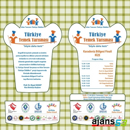 Engelli bireylerin yeteneklerine ve üretim potansiyellerine dikkat çekerek, toplumda farkındalığı artırmak maksadıyla ilk olarak 2013 yılında başlatılan “Türkiye Yemek Yarışması ve Altın Tencere Türkiye Ödülleri”nin Karadeniz Bölgesi Finali 11 Nisan Cumartesi günü saat 12:30’da İsmail Kahraman Kültür Merkezi’nde gerçekleştirilecek.