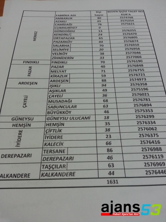 Rize çalışma ve İş Kur İl Müdürü Hasan Kiraz uzun süredir gündemi meşgül eden işçi alımı olayanın sonuçlandığını belirterek “ Rize- Artvin- Trabzon ve Giresun illerinde Çaykur”un alacağı işçiler için müracatlar sabah başlayacak. Çarşamba sabahı başlayacak olan muracaatlar 24 Nisan tarihine kadar sürecek ve bu süre içinde kuruma girmek isteyen tüm işçiler muracaatlarını yapmış olması gerek. Çay yükleme ve boşaltma ekibinde 1631 kişi alınacak, bu işçiler tamamen erkeklerden oluşacak. Bu işçiler için 5 Mayıs tarihinde kapalıspor salonunda kura çekimi yapılacak. İş Kur olarak muracaatları 28 Nisan tarihinde teslim edeceğiz. Yükleme ekibinde yaş sınırı yok” dedi.