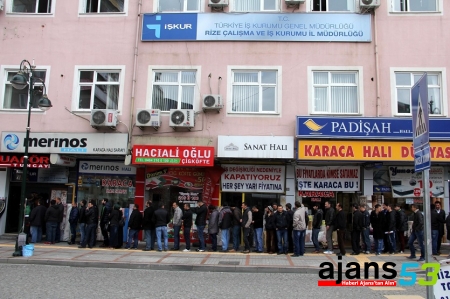 ÇAYKUR'un 3 bin 500 işçi alımı için başvuruların başlayacağını duyurmasının ardından İŞKUR Rize İl Müdürülüğüne müracaat eden vatandaşlar, uzun kuyruklar oluşturdu