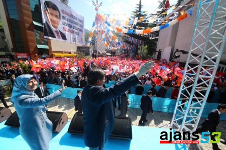 AK Parti Artvin mitingine katılmak için kente gelen Başbakan Ahmet Davutoğlu ve eşi Sare Davutoğlu, vatandaşlarca coşkuyla karşılandı.