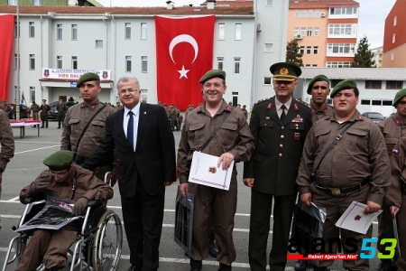 10-16 Mayıs tarihleri arasında kutlanan Engelliler Haftası dolayısıyla Rize İl Jandarma Komutanlığı tarafından düzenlenen etkinlikle Rize’deki 43 bedensel engelli vatandaşa bir günlük temsili askerlik yapma imkânı sağlandı. Bir günlük temsili görevlerini tamamlayan engelli vatandaşlar düzenlenen yemin töreninde ettikleri yeminle vatani görevlerini tamamladılar. Yeminin ardından Vali Yazıcı ve törene katılan diğer davetliler tarafından Mehmetçiklere terhis belgeleri ve hediyeleri verildi. Terhis belgelerini alan Mehmetçikler sevinçlerini aileleriyle paylaşırken, aileler de etkinliği düzenleyerek çocuklarını sevindiren yetkililere teşekkür ettiler. Düzenlenen törenin sonunda davetliler ve asker aileleri yemin eden askerlerle topluca hatıra fotoğrafı çektirdiler.