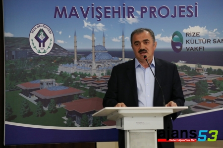 "Rizemizi tanıştırdığımız devasa ve mega projelerle beraber bugün bu projeler zincirine yeni bir halkayı katabilmenin heyecanını yaşıyoruz. Özellikle Rize'ye dışarıdan gelip ilimizi tanımak isteyen yerli ve yabancı turistlere karşı il merkezinde bizim göstere bileceğimiz mekan konusunda zorlandığımız anlar olmuştur. Kale ve Ziraat çay bahçemiz haricinde gösterebileceğimiz bir alan yok. Diğer illerimize gittiğimizde o ilin bir tarihi yüzü birde modern yüzü vardır. Bu yönde Mavi Şehir projemiz Rizelilerin ortaya atmış olduğu fikirlerin yoğrulmasıyla ortaya çıktı. Projenin öncülüğünü Rize Belediyemiz yapmaktadır. Rize sokaklarında dolaştığımız zaman hemşehrilerimizin bu yönde talepleri olmuştur. Farklı illere gittiğimizde şehirlerin turizm çarşıları vardır. Rize'ye gelen bir turistin gezip dolaşabileceği, Rize hakkında bilgi sahibi olabileceği bir ortam üretmek istiyoruz. Rize'nin marka şehir olma yolunda hayata geçirilecek en önemli projelerden bir tanesidir. Sosyal içerikli proje olarak en büyük projedir diyebiliriz. Bu projenin gerçekleşmesinde Çevre ve Şehircilik Bakanlığımız elini yeterince taşın altına koyuyor. Daha çağdaş ve modern bir Rize için atılan bu adımların ilimiz için hayırlı olmasını temenni ediyorum" dedi.