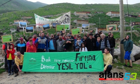 Rize’nin en yüksek yerleşim yeri olan 2350 rakımlı Kavrun Yaylası’nda bir araya gelen çevreciler, “Yeşil Yol Projesi”ni protesto etti.