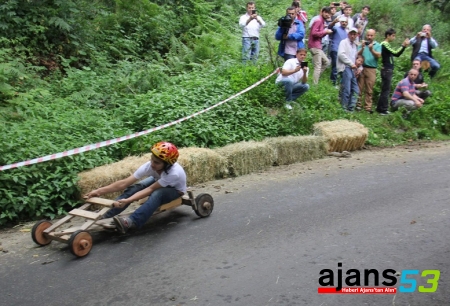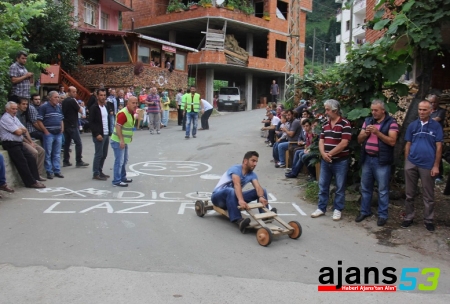 Laz Ralli Tahta Araba Yarışları geçtiğimiz yıllarda olduğu gibi bu yıl da Rize’nin Çamlıhemşin ilçesi Dikkaya köyünde gerçekleşti. Günün ilk saatlerinde yarışmacılar atölyelerde araçlarını onarıp lastiklerini yağlayarak yarışlara hazırlandılar. Yarışa katılan araçlar arasında orijinal araçlara benzetilen özel yapım tahta arabalar ilgi odağı oldu. 9-15, 16-40, 40-80 yaş gruplarında üç kategoride gerçekleştirilen yarışmalar öncesi Dikkaya Köyü İlköğretim Okulu’nun bahçe düzenlemesini yapacak sponsorun bulunması için yarış ağası seçimi yapıldı. 20 bin TL’lik bahçe düzenleme giderini üstlenen Av. Mustafa Karaman, yarış ağası seçilerek bir ağacın üzerinde kurulan çardaktan yarışları izlemeye hak kazandı.
