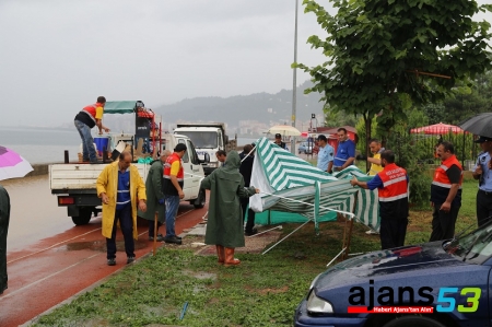 İşgal edilen mekanlara yönelik yapılan çalışmada şahıslara ait eşyalar tutanak altına alınarak Rize Belediyesine ait depoya kaldırıldı.