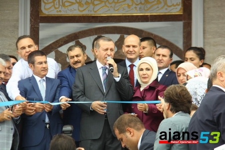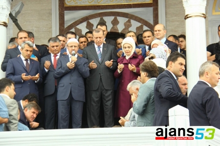 Cumhurbaşkanı Erdoğan’ın konuşmasının ardından dua edilirken, Erdoğan’a caminin fotoğrafının bulunduğu bir tablo hediye edildi. Ardından caminin açılışı Cumhurbaşkanı Recep Tayyip Erdoğan, eşi Emine Erdoğan, Gümrük ve Ticaret Bakanı Nurettin Canikli, Orman ve Su İşleri Bakanı Veysel Eroğlu, Cumhurbaşkanlığı Başdanışmanı Binali Yıldırım, AK Parti Genel Başkan Yardımcısı Süleyman Soylu ve çok sayıda davetlinin katılımı ile gerçekleştirildi.