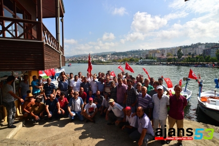 Belli bir bölgede toplanan balıkçılar ve beraberindekiler, şehitler için saygı duruşunda bulundu, ardından İstiklal Marşı'nı okudu. "Şehitler ölmez, vatan bölünmez" sloganları atan balıkçılar, daha sonra limana döndü.