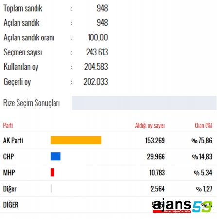 Vatandaşların bugüne kadar yapılan hizmetlerin ödülünü verdiğini vurgulayan Avcı, "Rize'de ilk sonuçlara göre partimiz oy oranını artırarak 3 milletvekilinin tamamını çıkarmayı başarmıştır. Resmi olamayan sonuçlara göre Rize'de yüzde 75'in üzerinde bir oy aldığımız öngörülüyor. İnşallah Türkiye genelinde bizden daha başarılı iller olur. Önemli olan Türkiye'nin istikrarı için herkesin üzerine düşen görevi yapması" dedi.