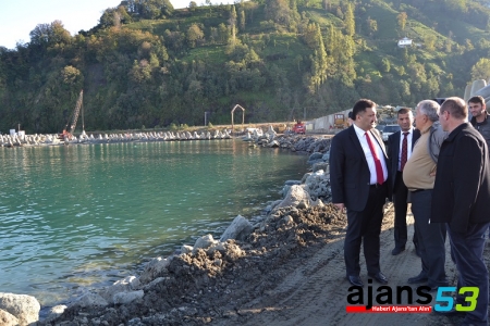 Karal balıkçı barınağı inşaat alanına giderek burada yüklenici firma sahibi Hızır Hop’tan bilgiler aldı.