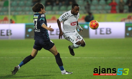 41. dakikada kazanılan köşe vuruşunda sağ taraftan Makiadi'nin ceza sahası içerisine ortasında Ahmet İlhan Özek'in kafa vuruşunda top üst ağlarda kaldı.