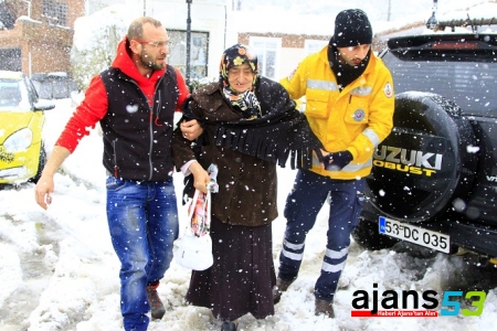 Tüm yurdu etkisi altına alan karakış bir çok köy yolunu da ulaşıma kapatırken, köylerde mahsur kalan hastaların sağlık merkezlerine ulaştırılması için yetkililer seferber oldu. Güneysu İlçesine bağlı Kibledağı Köyünde yaşayan ve diyaliz hastası olan 70 yaşındaki Fatma Kar, yolların kardan kapanmasından nedeniyle mahsur kaldı.